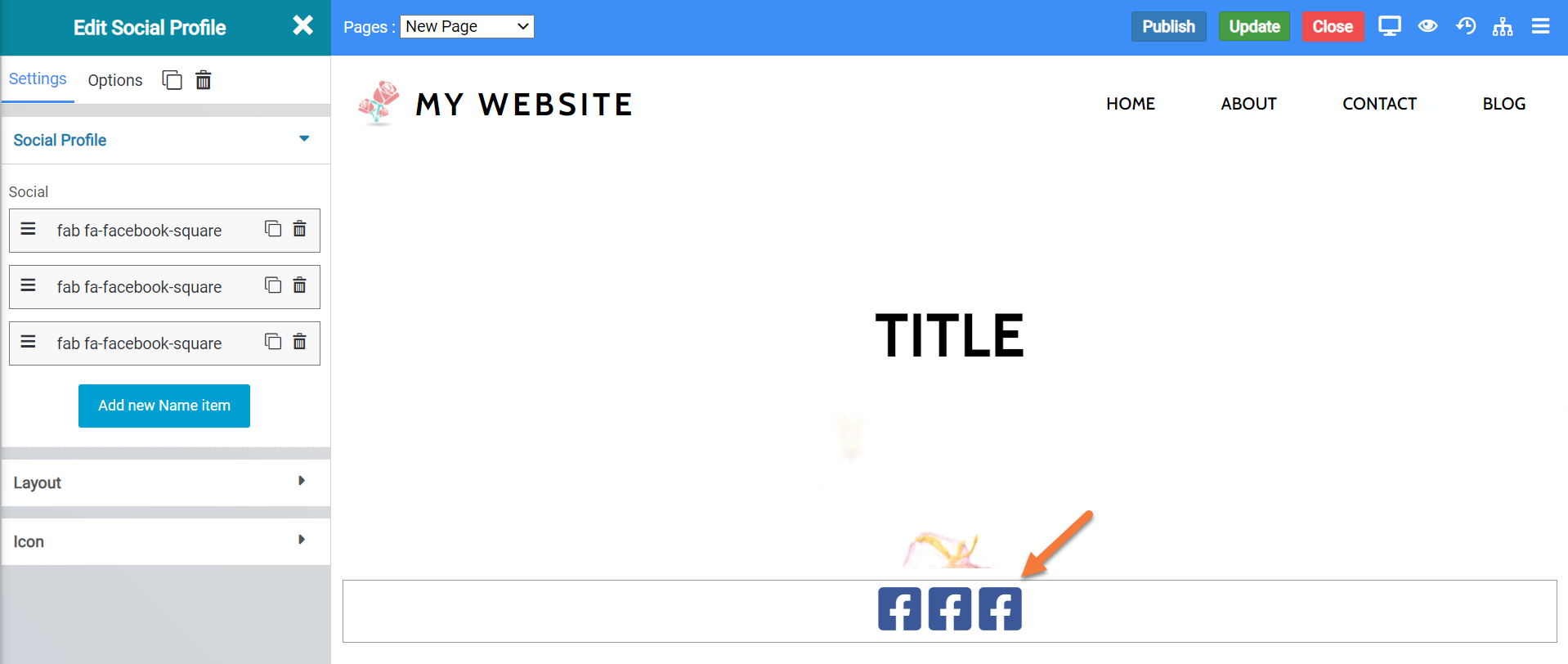 - The Social Section lets you add/remove different social networks. By default, three Facebooks are added, but you can remove them and add others, such as Twitter, Instagram, and LinkedIn.