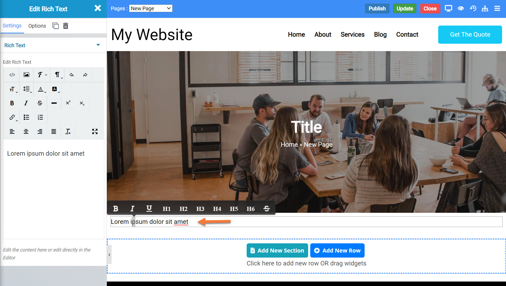 You have many options when it comes to editing the text. Below is the Rich Text editor: