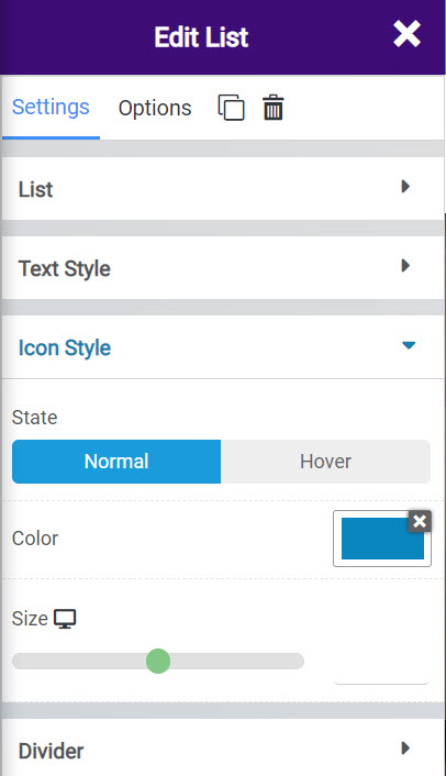- In the Style and Hover Effects, you can set a Hover or Normal effect for the Icon.
