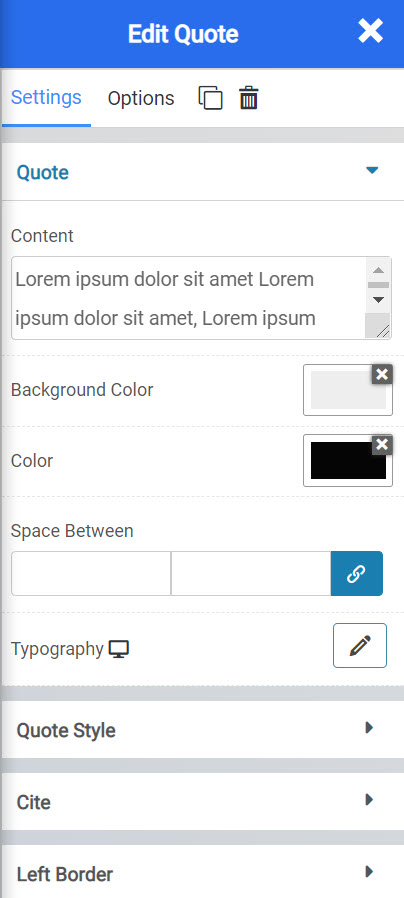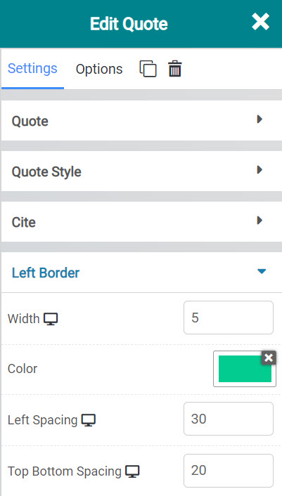 - The Left Border settings let you control the tiny area that is to the left of the Quote and Citation. The left border is a design element.