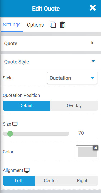 Beneath Edit Quote, the “Options” tab allows you to control the following settings: