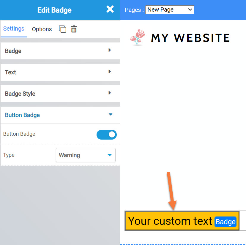 The Text options allow you to change the text that is adjacent to the Badge and the way it looks. You can choose from these settings: