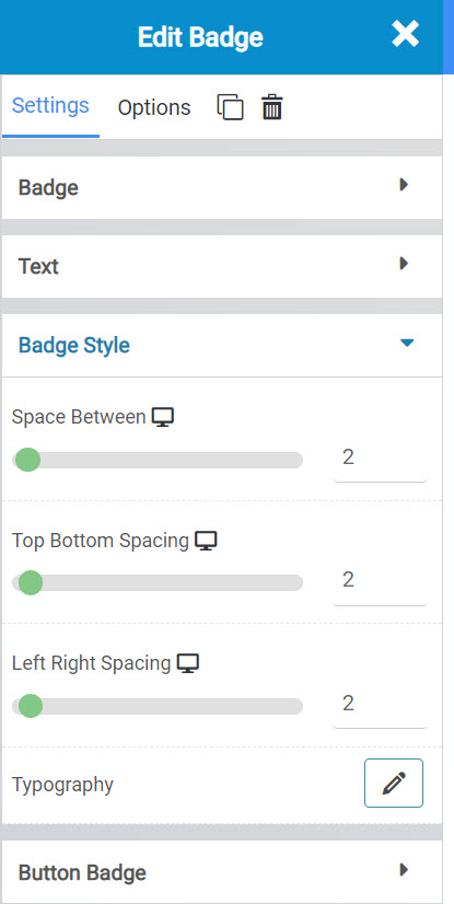 - Using the Space Between slider, you can adjust the space between the Badge and the text to the left of the Badge.