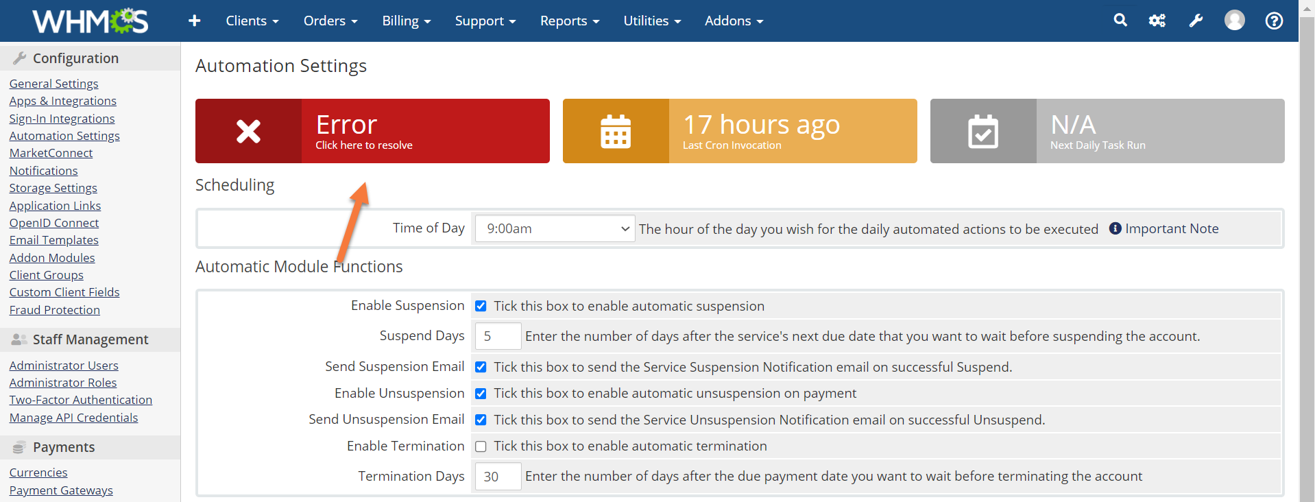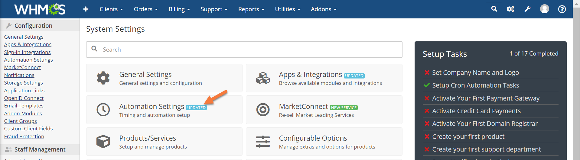 How to Configure the Automation Settings in WHMCS