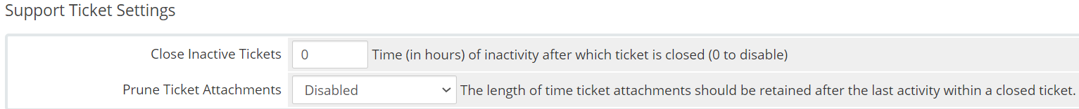 In the Support Settings area, you can choose whether you want tickets to automatically close after x amount of time of inactivity.