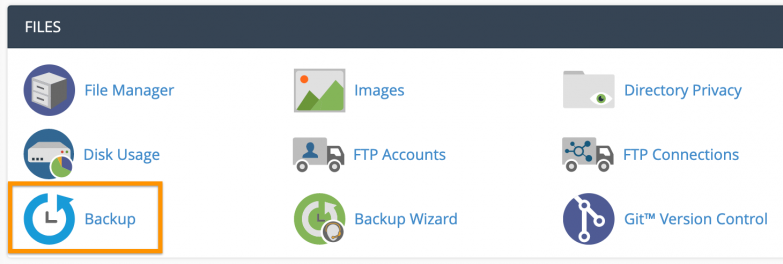 2. Navigate to the Files section and click on Backup.