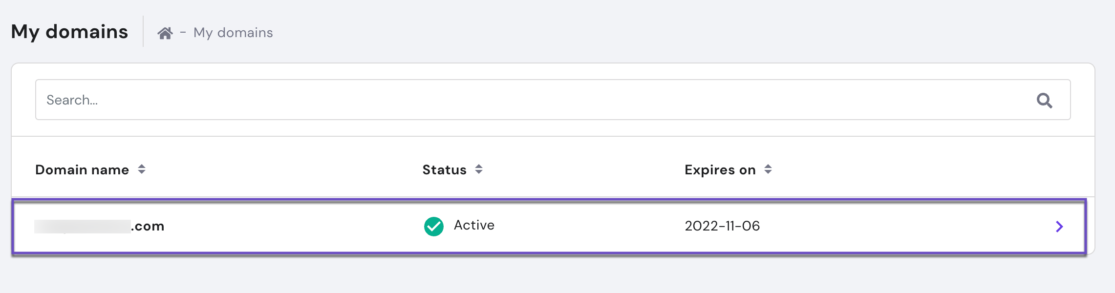 Find the domain for which you wish to manage the Nameservers and click on it.