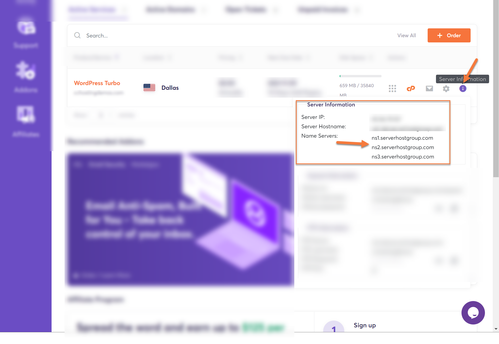 To learn more, we published an easy guide explaining how to locate your Nameservers inside of the Client Area here.