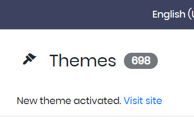 After clicking Activate, you will see a note at the top of the page stating the new theme has been activated.