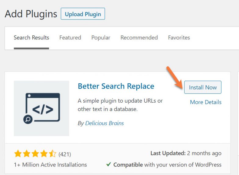 Step 3: Locate the Better Search Replace plugin in the results and click the Install button to download & install the plugin.