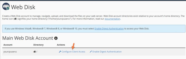 Step 2: Click “Configure Client Access” beneath the Main Web Disk Account section.