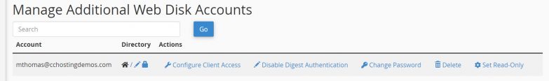 After clicking Create, cPanel will create the Web Disk and the user and they will be able to access files using their remote WebDAV app of choice.