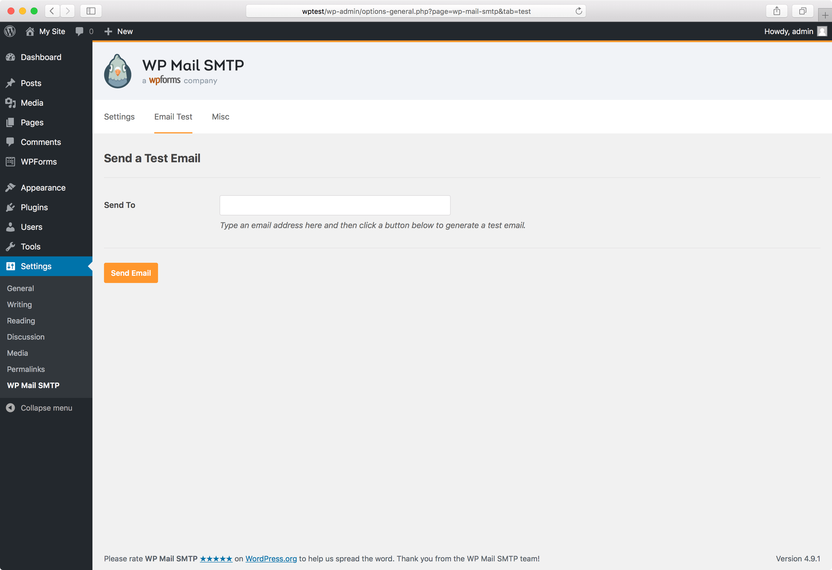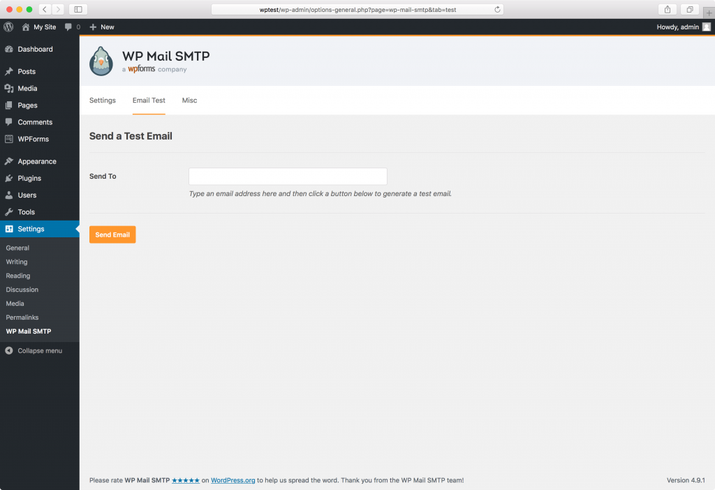 Once you’ve saved the changes, it is recommended to send a test email to one of your email addresses. You can do so from the ‘Email test’ tab.