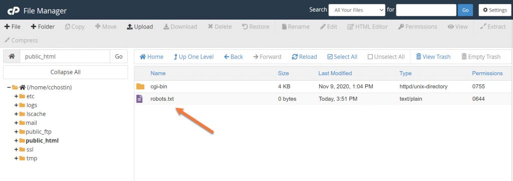 You will be taken back to the cPanel File Manager where the robots.txt file has been created and updated with this directive.
