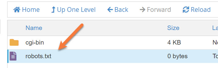 To begin editing the file, single-click on the robots.txt file so that it is highlighted in semi-opaque cyan color, as shown below: