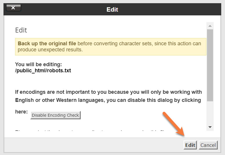 For the use of the robots.txt file, you can ignore this and proceed to click Edit.
