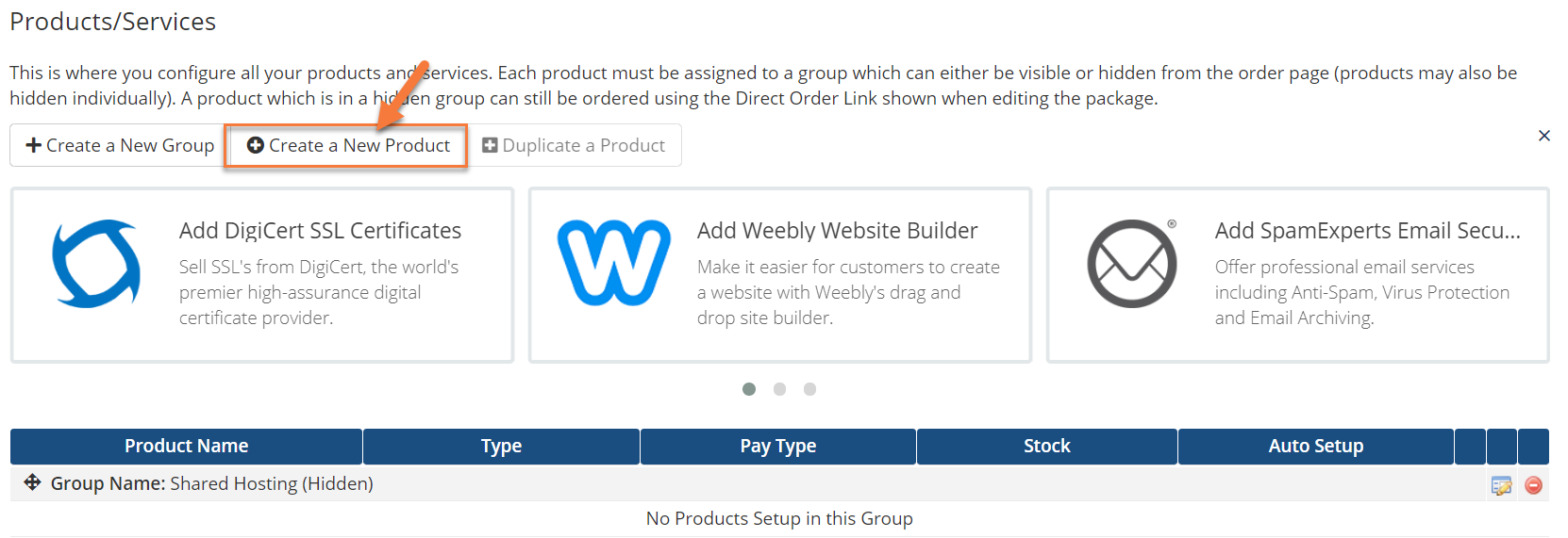 - The product group I created originally is for Shared Hosting, so I’m going to leave that selected.