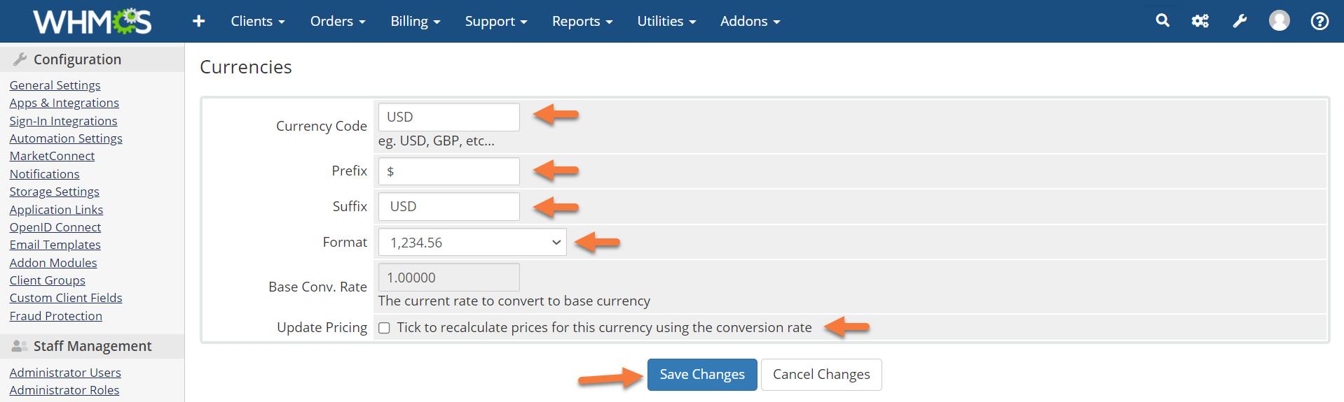 How to Change Default Currency in WHMCS