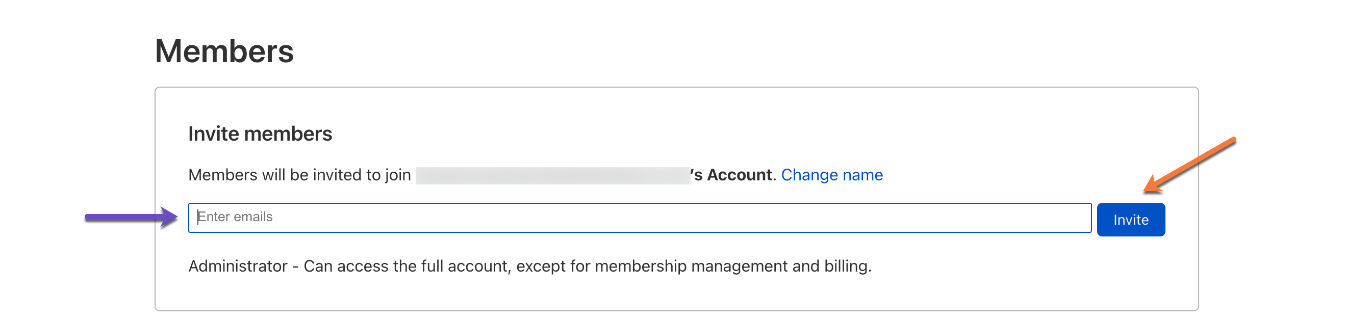 | Administrator (Access the full account, except for viewing payment information, adding/removing account members, or canceling subscriptions) |