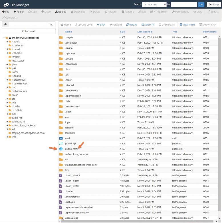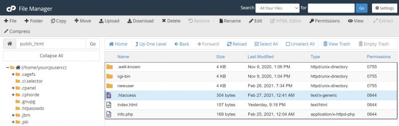 Step 4: Once your public_html folder is open, look for your .htaccess file: