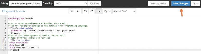 Suppose you’d prefer not to increase the memory footprint of your WordPress installation or worry about managing another plugin. In that case, you can use the .htaccess to disable XML-RPC on your WordPress site.