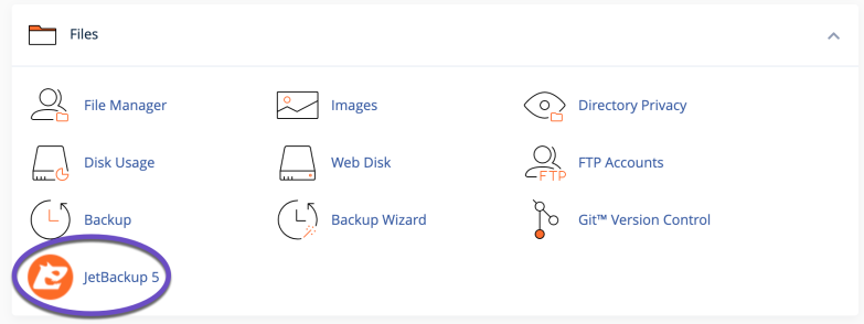 Step 2: Once you’ve logged in, scroll down through your cPanel and find the Files section, then open JetBackup 5.
