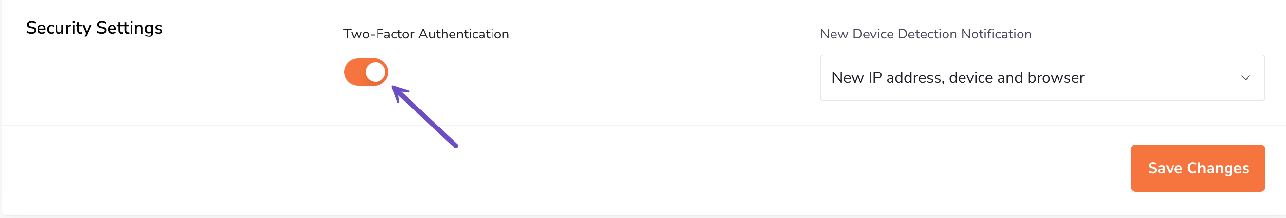 Step 4: Navigate to the Security Settings section and toggle the button for Two-Factor Authentication to ON.
