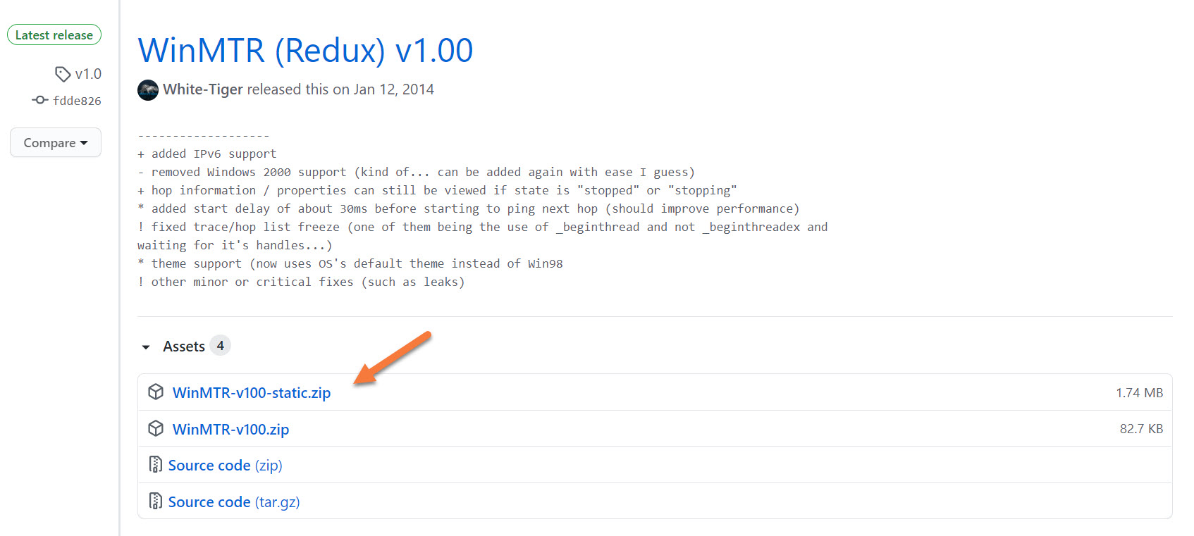 Step 1: Download WinMTR. If you Google WinMTR download, there are a lot of sites that have the file, but some may be sketchy or give you malware. To prevent that, you can click this link to open a safe place to download the latest build of WinMTR.