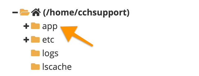 2) In the left-hand column of File Manager, click the text of the application root folder.