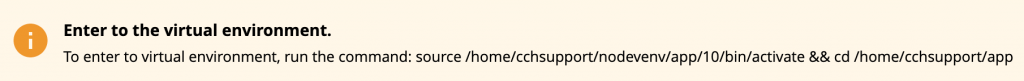 To install packages with NPM and do other command-line tasks related to the application, log in via SSH and enter the virtual environment for the application using the command