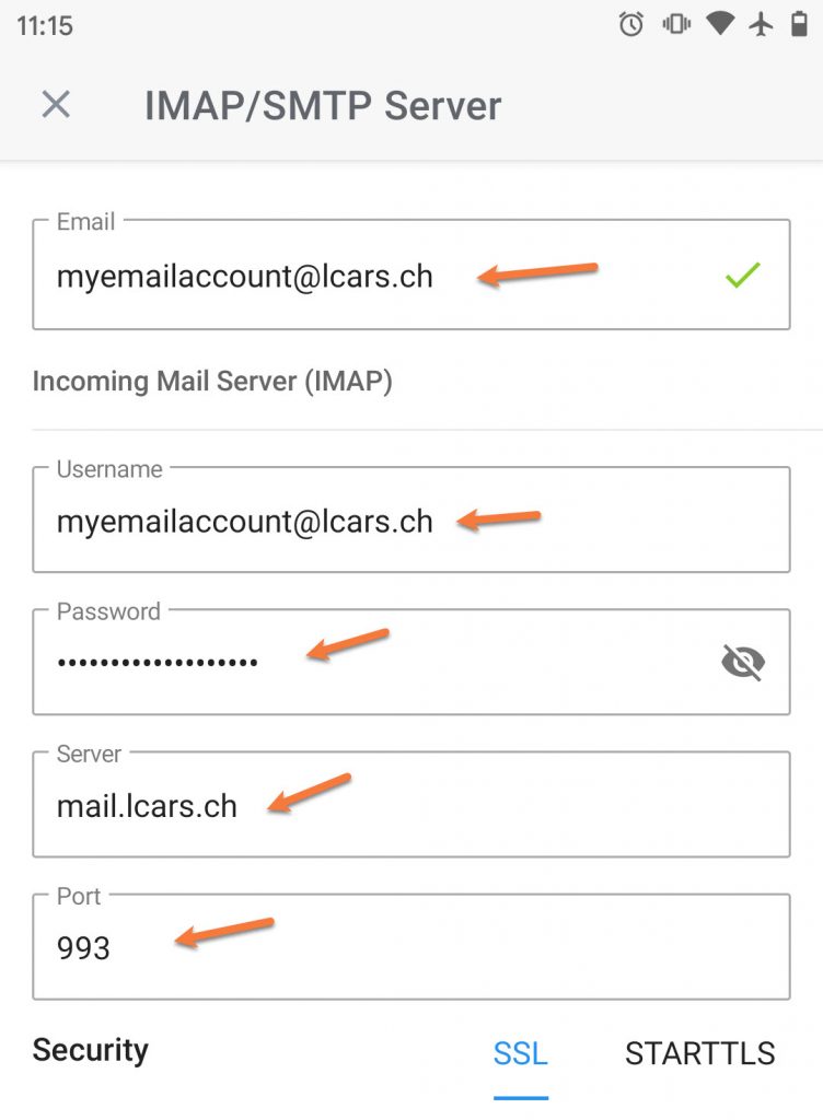 And lastly, ensure SSL is selected next to Security. Your settings should look similar to the ones below: