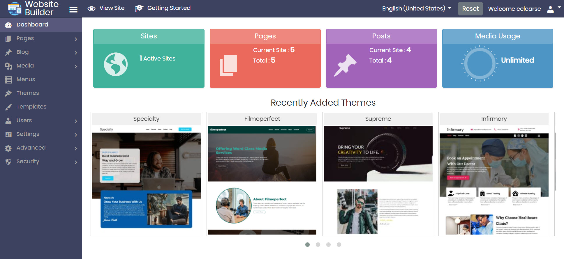 The Website Builder Admin for that site will open.