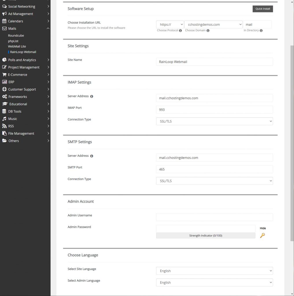 Are you bored of Roundcube and Horde? Not to worry! RainLoop is available in your Softaculous Web Apps Installer for a fresh, modern take on webmail. RainLoop also has modern features such as reCAPTCHA and 2-Factor Authentication plugins which bolster security to your webmail.