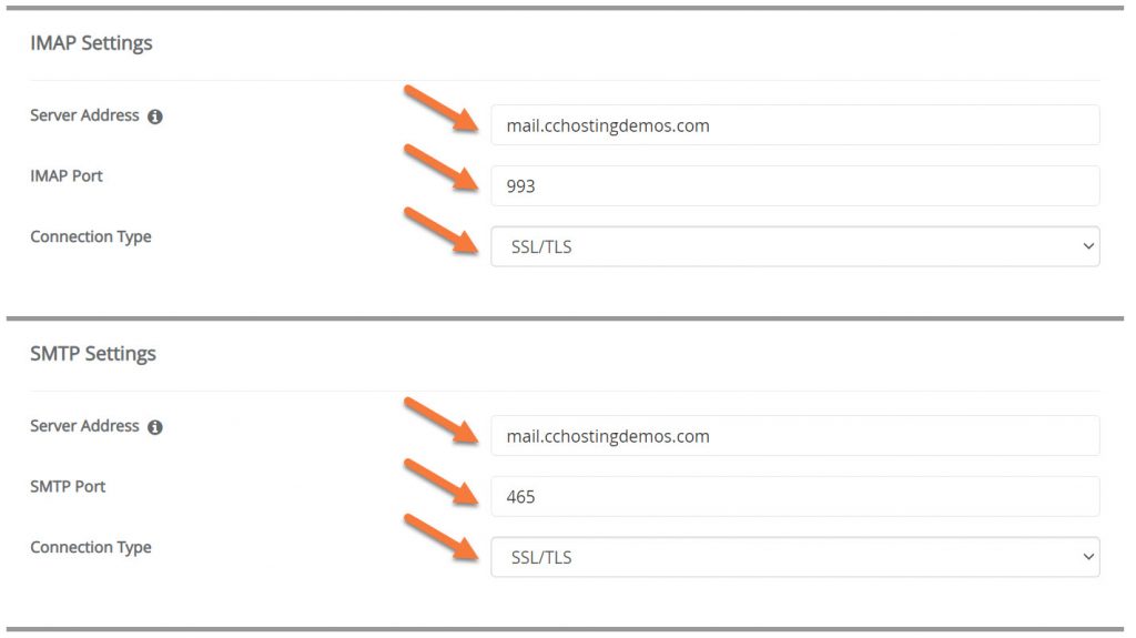 Next, we have our IMAP and SMTP Settings. Think of RainLoop as another email client, like Apple Mail or Outlook. Like those apps, it needs to know how to communicate with the mail server to send and receive email.