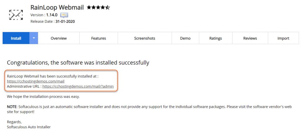 Under Choose Installation URL, you have the option to choose a URL in which to install RainLoop.