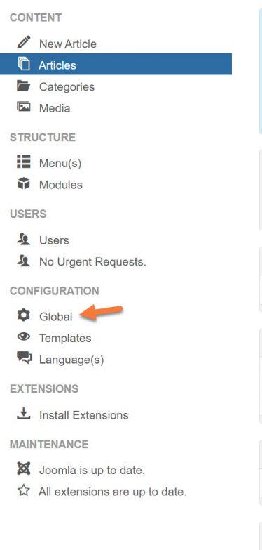 Step 2: In the menu on the left of the Control Panel, click “Global” beneath Configuration.