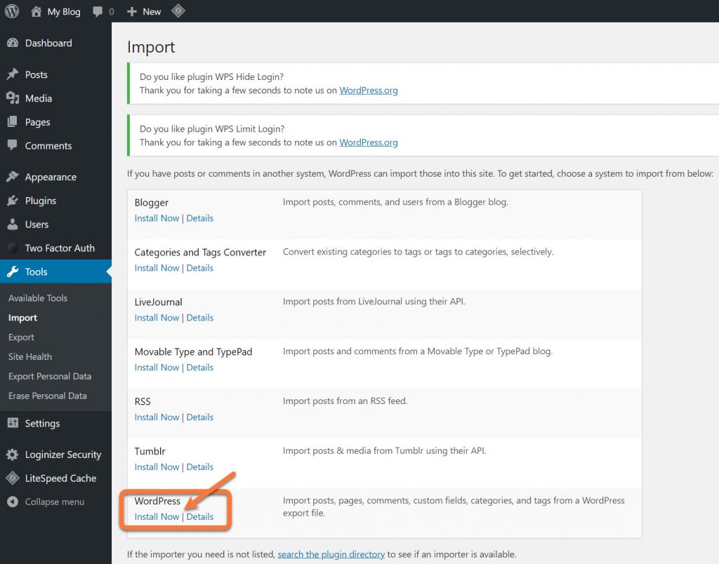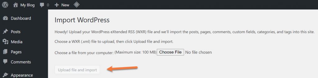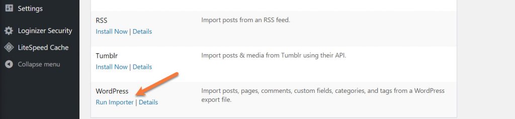 The next step is to import the .xml file you downloaded from Squarespace into your WordPress site.