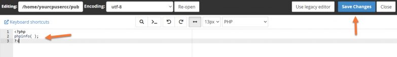 A modal will appear where you can give the file a name. Enter info.php and click Create a new file.