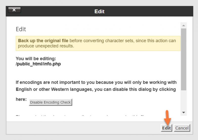 Step 4: After the file is created, single-click the file in the directory listing, then click Edit at the top: