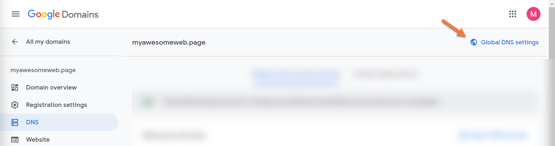 Step 4: Once the DNS Management page has loaded, look in the top right corner for the Global DNS settings button. Click this to open the configuration area.