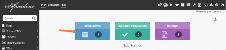 Step 3: Once Softaculous is open, click the blue Installations button to list your WordPress installs: