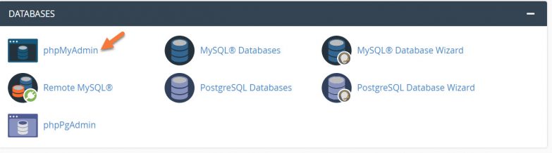 Step 2: Scroll down to the Databases section and click phpMyAdmin to open the tool.