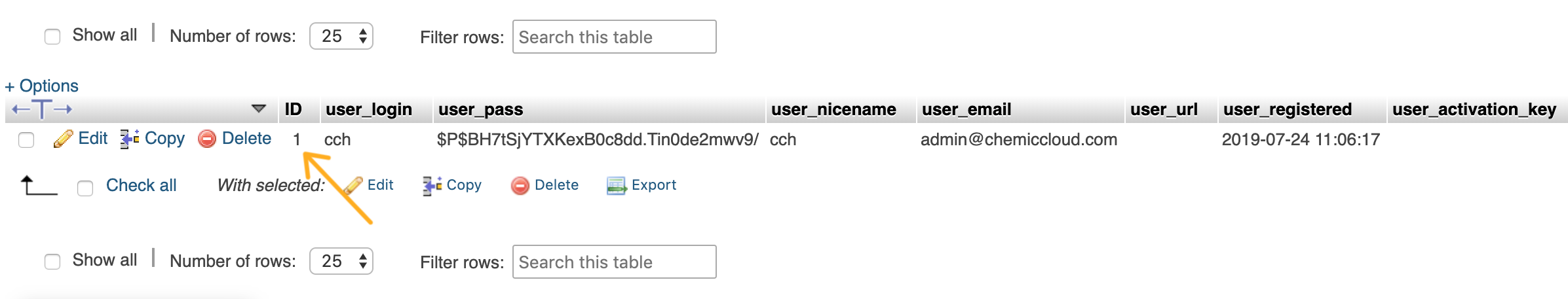 1) You’ll have to locate first the ID number for your WordPress admin username. Open the wp_users or xxx_users table in the database as highlighted. (wp_ is just the prefix, your table prefix may be different)