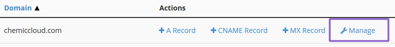 5) You can also edit or remove a DNS record you have previously created by clicking on the “Manage” link.