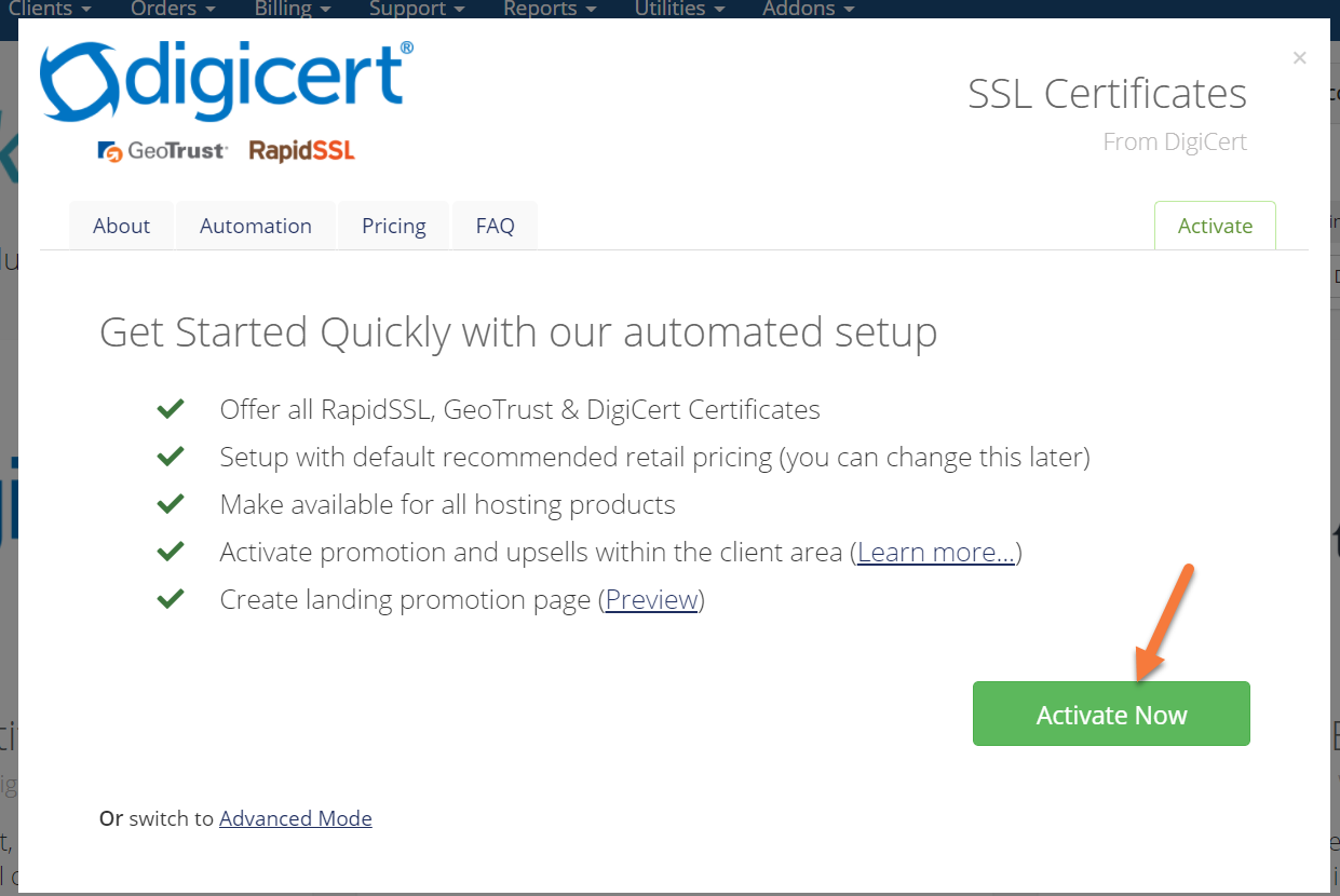 Congratulations! You’ve now activated WHMCS MarketConnect!